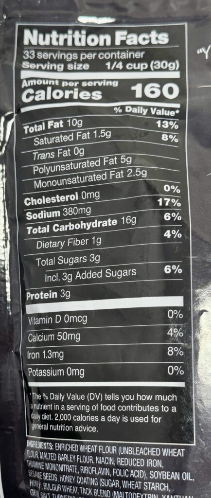 I first picked up the this 2lb 3oz bag (because who buys a small bag of a great snack?) and was instantly hooked. I have to admit, I wouldn’t have even noticed them if not for the sampling station on December 5, 2025. This article is part personal journal so I like to reming myself when I was there. Maybe it will come in useful when I’m old and forgetful. One taste of that honey-sweet, nutty crunch was all it took, and I grabbed a bag for $7.59—a fantastic price for this quantity and quality!