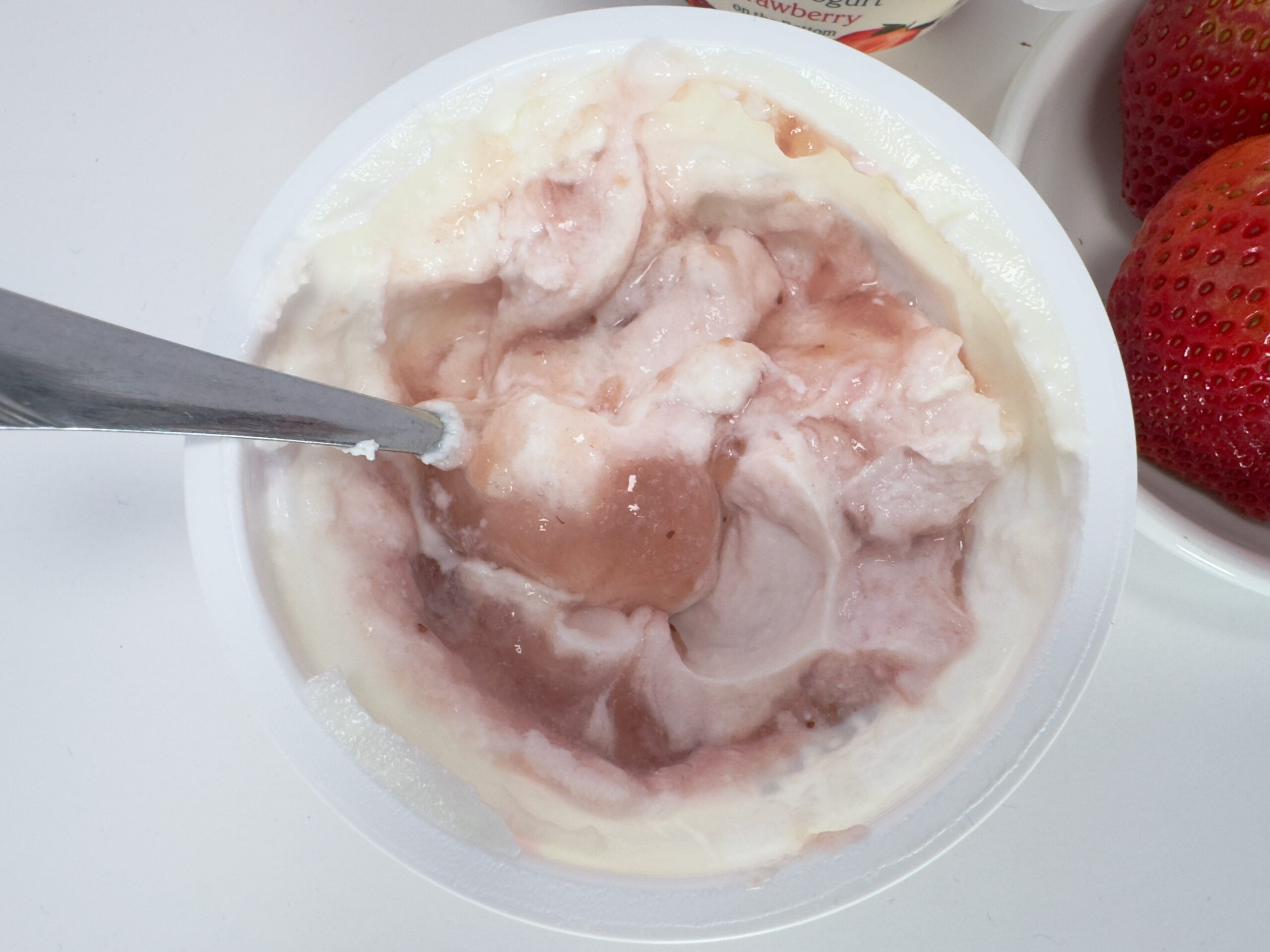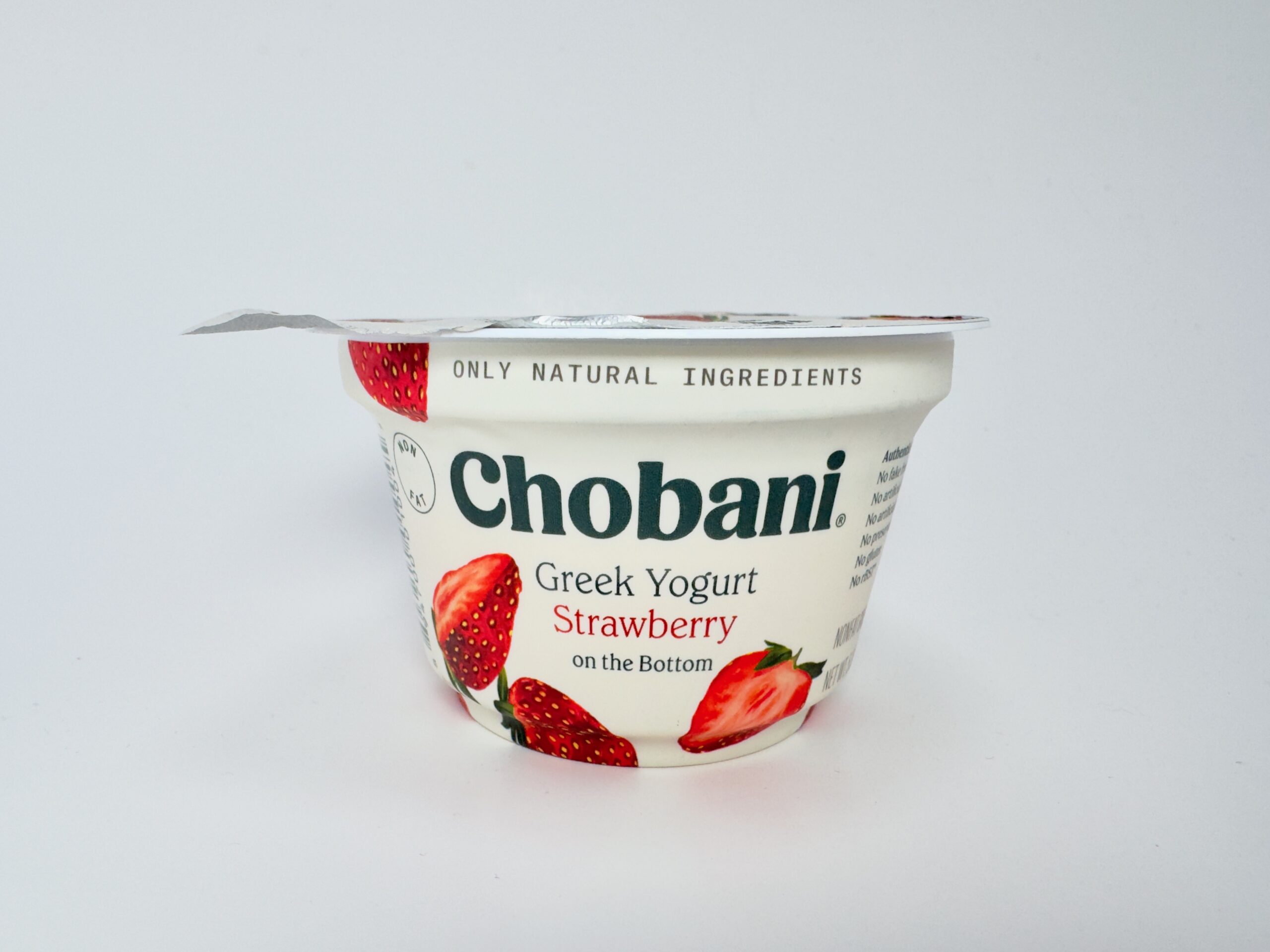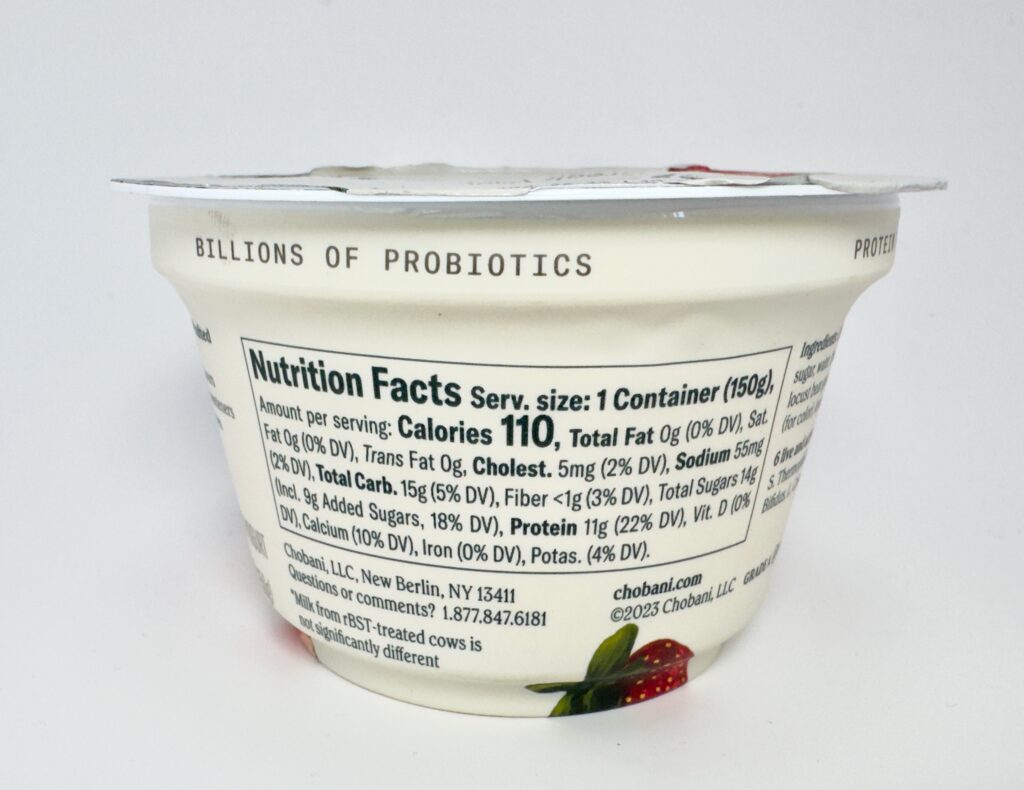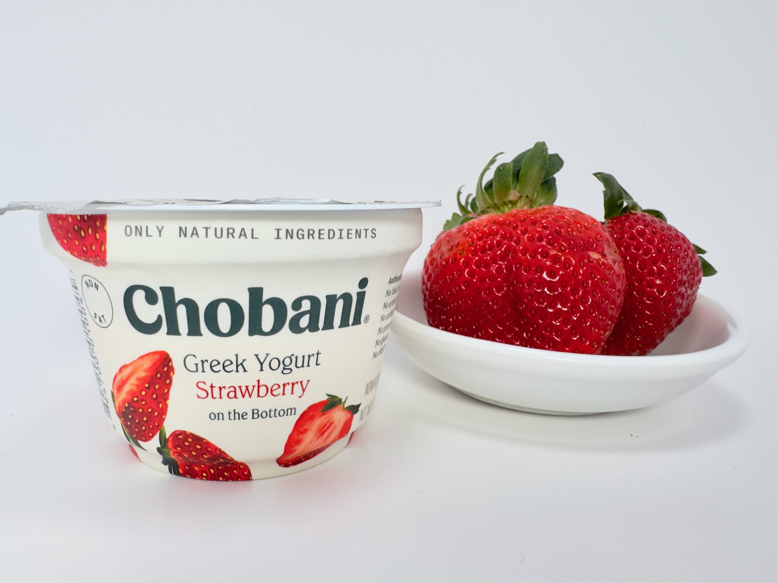 This flavor is so dominant that it has its own empire. You can find it in standard 5.3 oz cups, 4-packs, low-sugar, AND no-sugar-added versions. During my latest shoot, I managed to catch a sale where the fresh strawberries were $0.99 and the Chobani cups were also $0.99. It’s the perfect budget-friendly, high-protein snack.