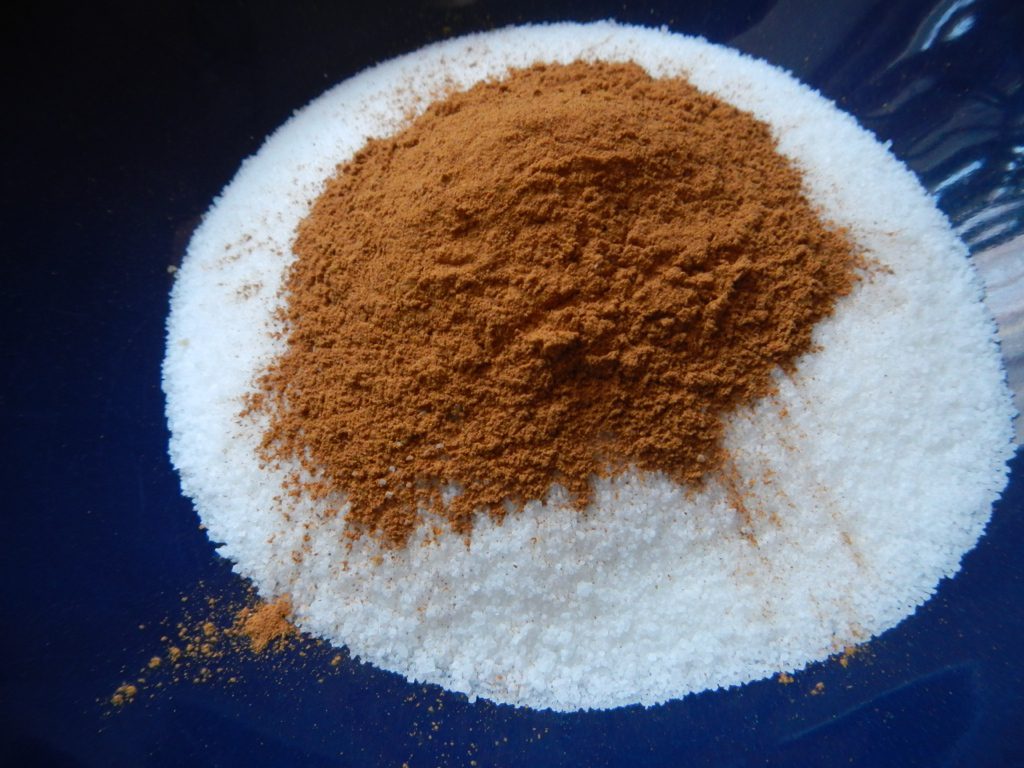 - Mix the sugar and cinnamon.