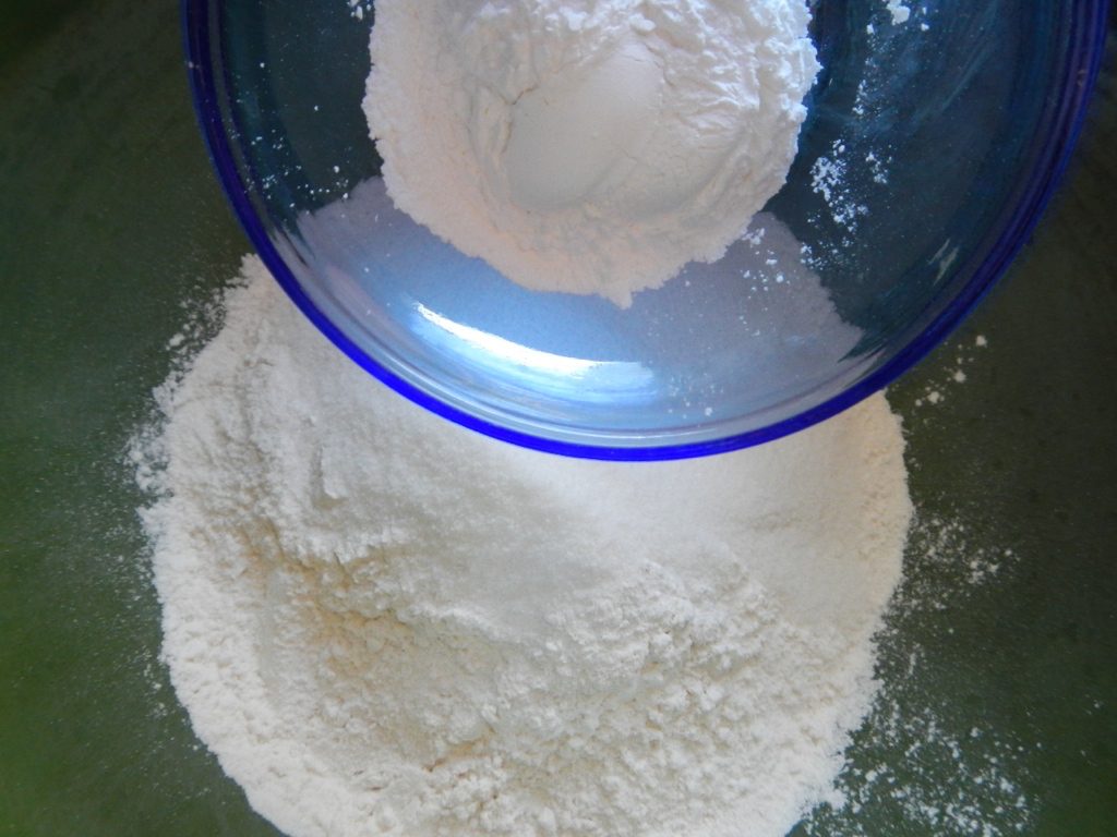 - Mix the all-purpose flour with baking powder. Omit if using self-rising flour