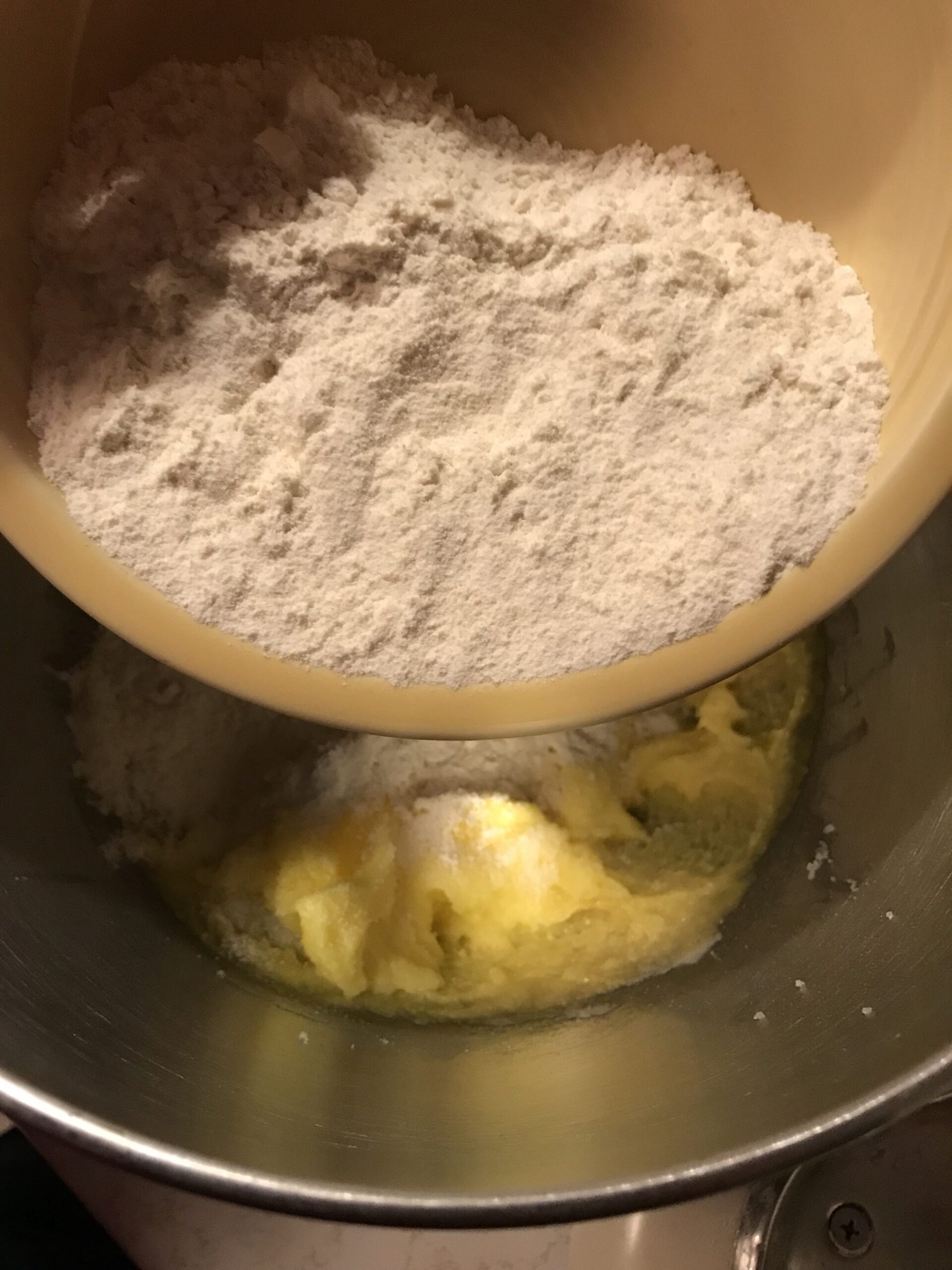 - Combine the flour, baking powder, salt in another bowl.