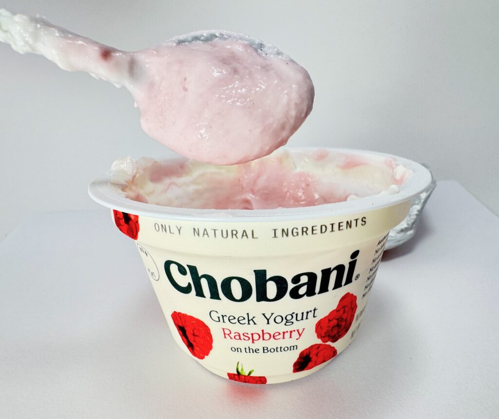 If you’re a fan of “Fruit on the Bottom” style yogurts, Chobani’s raspberry offering delivers beautifully. Underneath that creamy, plain Greek yogurt is a generous layer of sweet, bright raspberry puree and fruit pieces.